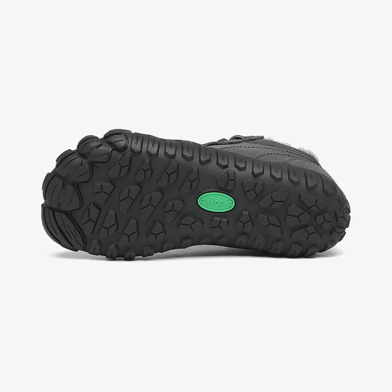 Botas barefoot de invierno para niños, cálidas, ligeras y flexibles. Con forro de piel sintética de conejo, suela plana de caucho natural (zero drop) y cierre rápido, ofrecen abrigo, comodidad y libertad en los días fríos.