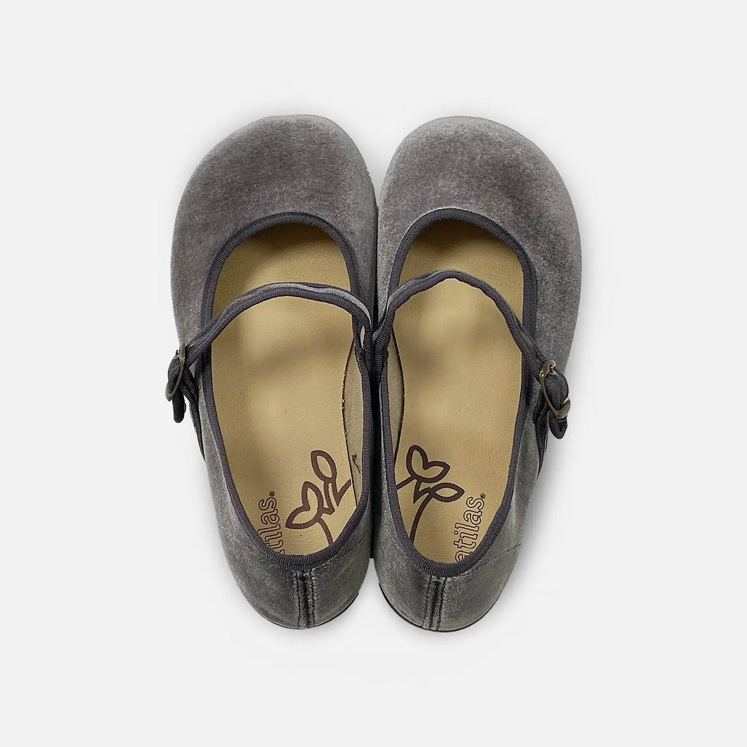 Les Merceditas Batilas Vellut respecten la forma natural del peu infantil. Amb puntera ampla, sola plana i flexible i folre de cotó transpirable, combinen elegància i comoditat per al dia a dia o esdeveniments especials.