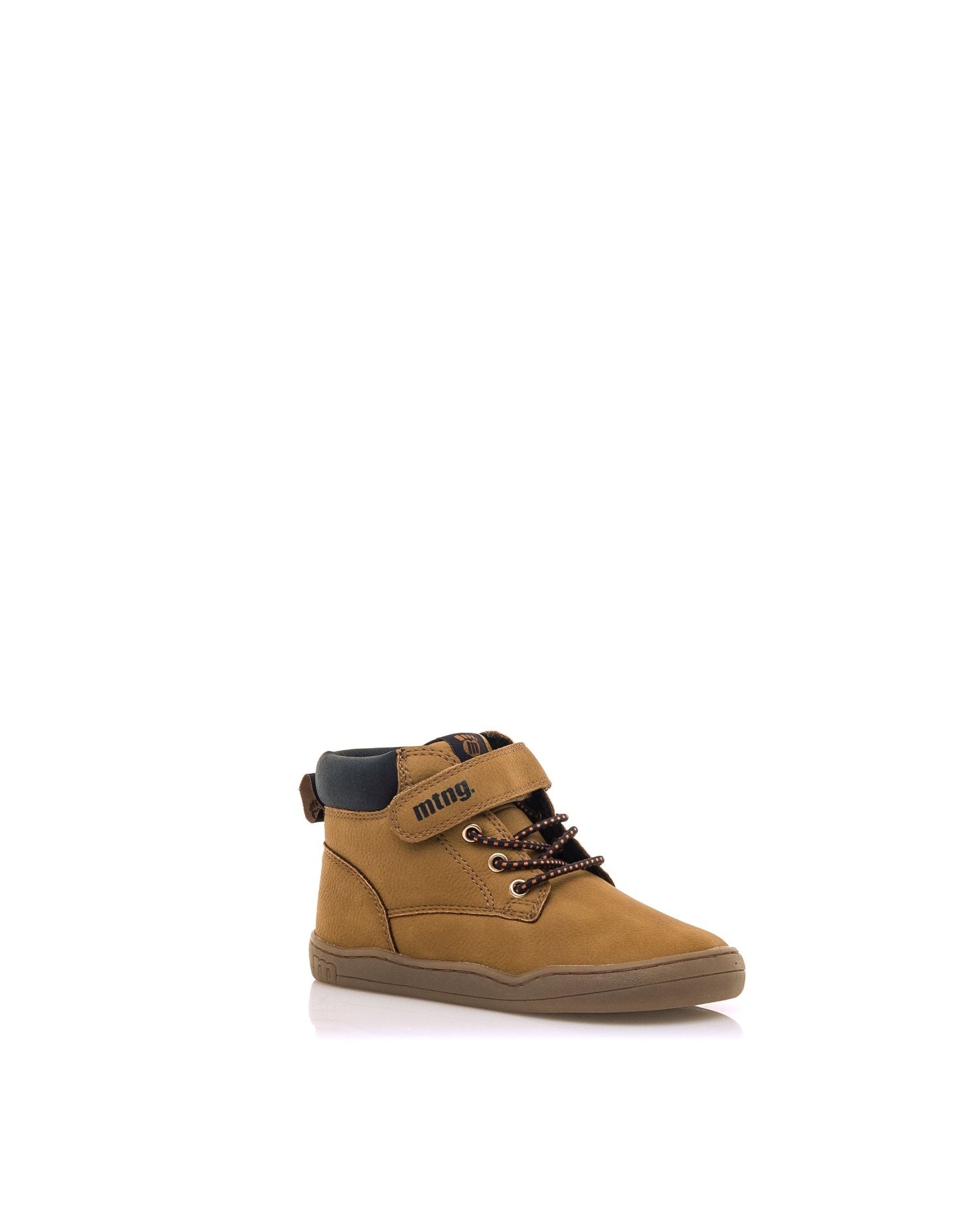 Su diseño urbano y versátil en color camel incluye cordones elásticos y cierre adhesivo, lo que facilita el calce y permite que el niño se vista con autonomía. El cuello acolchado en color negro mejora la comodidad y el ajuste, adaptándose al movimiento del pie.
